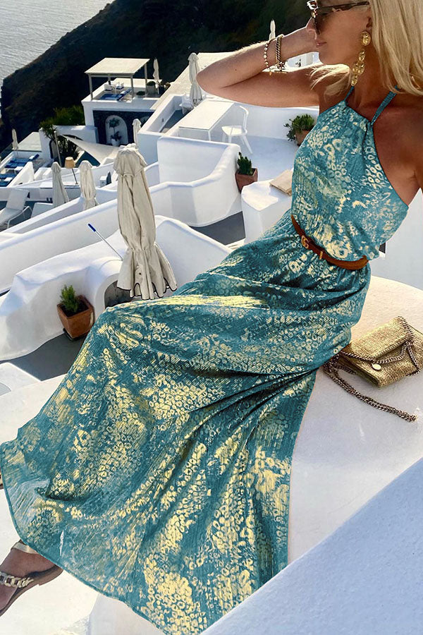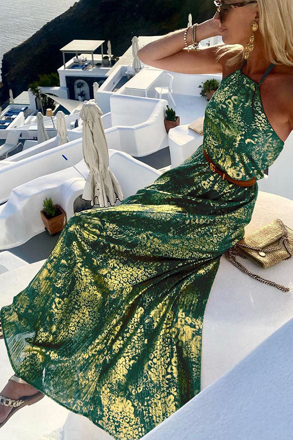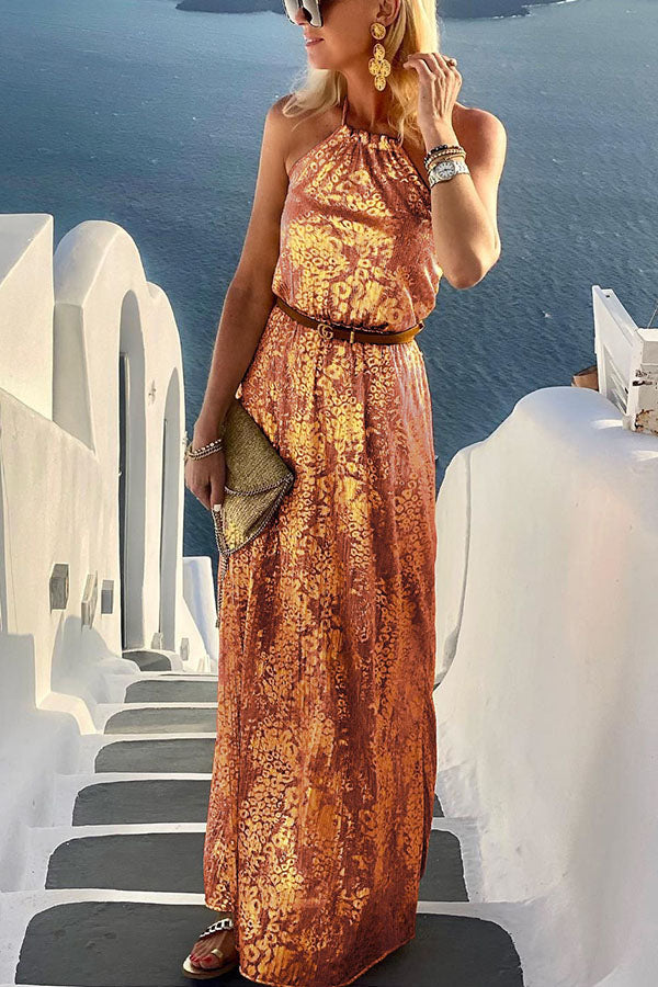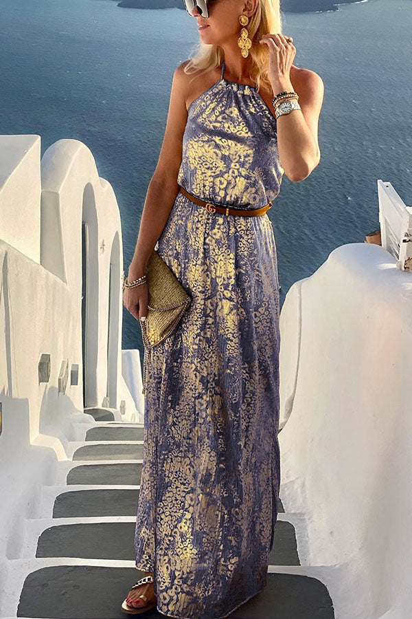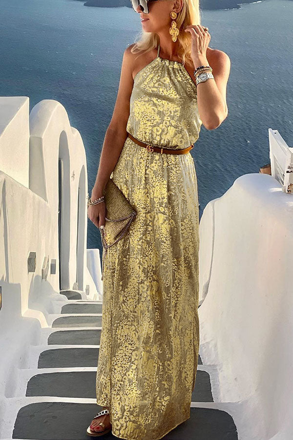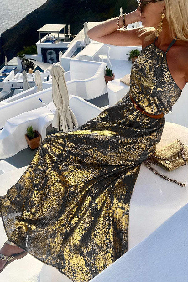 Diane Gold Leopard Print Halter Maxi Dress